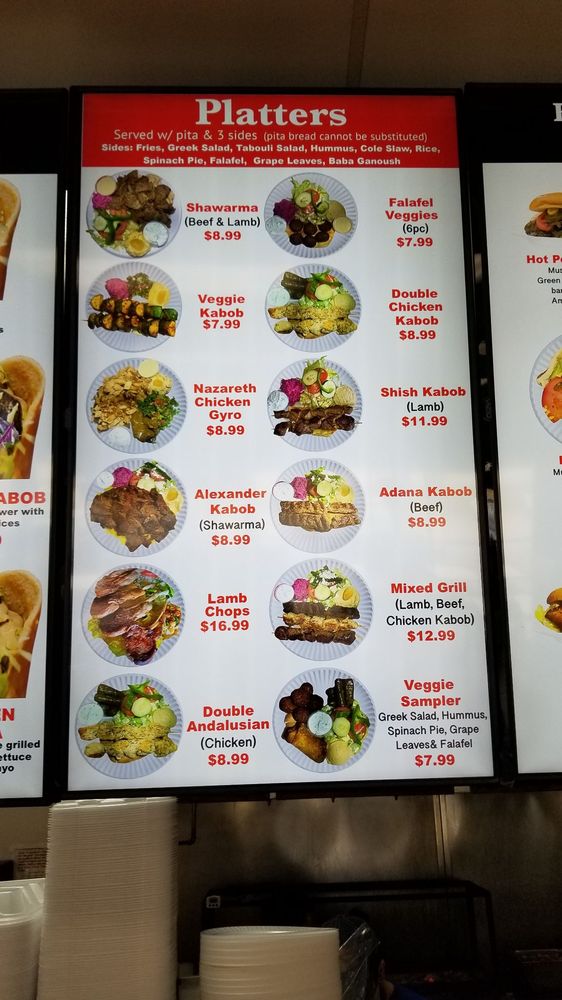 Nazareth Bread, located in Greensboro, offers a taste of authentic Mediterranean cuisine with a focus on sandwiches and burgers. The menu includes a variety of platters, hot sandwiches, and desserts, such as Shawarma Platter, Chicken Gyro, and Baklava. Customers praise the freshness of the pita bread and the generous portion sizes for the price. The restaurant's atmosphere is described as relaxed, with quick and friendly service. While some customers note the need for upgrades in seating and cleanliness, the overall consensus is that Nazareth Bread is a must-visit spot for delicious and hearty meals. With a range of meat and vegetarian options, this establishment caters to various dietary preferences. Don't miss out on a Middle Eastern culinary experience at Nazareth Bread.